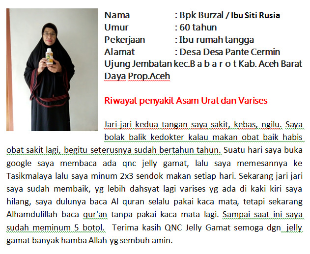 QnC Jelly Gamat merupakan solusi sehat yang dapat Anda pilih selain pengobatan menggunakan obat farmasi. QnC Jelly Gamat ini juga alternatif bagi Anda yang sulit sembuh dan memiliki penyakit komplikasi.